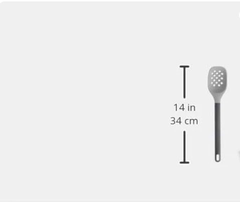 Перфорациите са оптимално разположени за бързо и ефективно отцеждане, а широката форма позволява лесно загребване на по-големи количества храна. Ергономичната дръжка осигурява стабилен и комфортен захват, което прави уреда подходящ за ежедневна кулинарна употреба. Лекият, изчистен дизайн в сив цвят се вписва хармонично във всяка модерна кухня. Подходяща за готвене, сервиране и безопасна за съдомиялна машина.