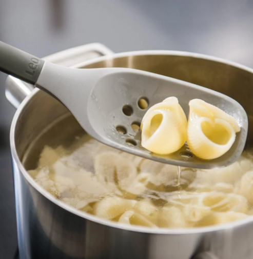Изваждайте и отцеждайте храна с лекота с BERGHOFF – лека, устойчива и безопасна BergHOFF силиконова решетъчна лъжица LEO, подходяща за всички видове съдове, включително незалепващи.
