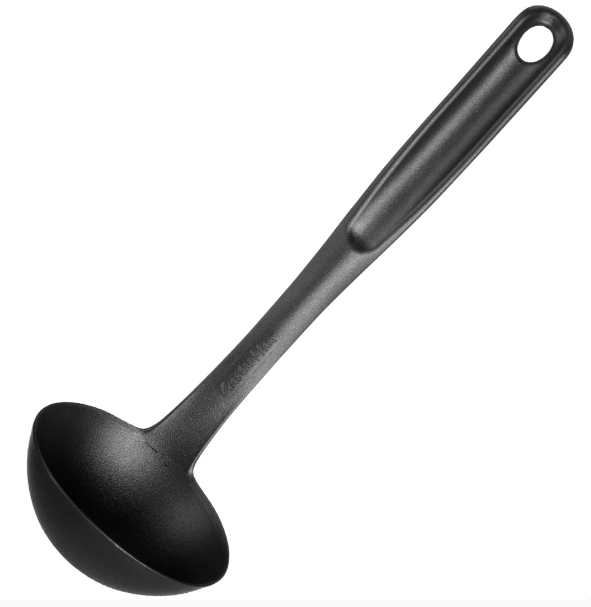 Черпакът разполага с добре оформена купа за загребване, която позволява лесно и стабилно сервиране на течни и полу-течни храни. Ергономичната дръжка осигурява сигурен захват, а леката конструкция прави работата бърза и комфортна. Куката или отворът в края на дръжката позволява лесно съхранение чрез окачване.