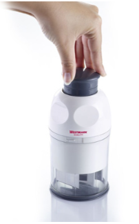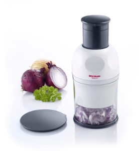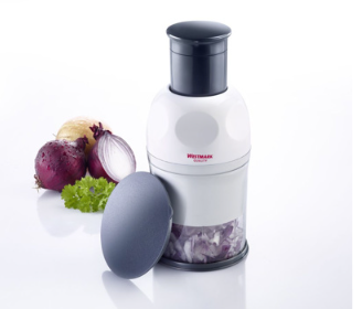 Многофункционален chopper „Kompakt“ от Westmark – нарязва зеленчуци, ядки и лук бързо и равномерно, и след това служи като контейнер за съхранение с капак.
