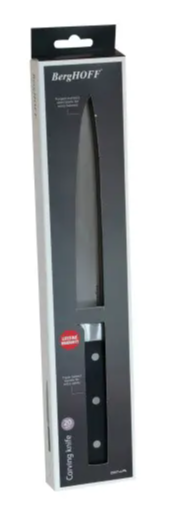 Ножът Carving Knife Gene 20 см от серията Gene на BergHOFF е проектиран за майсторско рязане на печено месо, птица или големи парчета. Острият, ковано стоманен клин с дължина 20 см осигурява лесно и чисто разрязване без разкъсване на плътта или остатъци. Дръжката е ергономична и тройно нитована, осигурявайки стабилен захват и контрол при работа. Благодарение на балансирания дизайн и фината острота на острието, този нож е подходящ както за домашен готвач, така и за по‑професионална кухня. Ножът е идеален за сервиране на ястия на масата – с елегантност и функционалност.