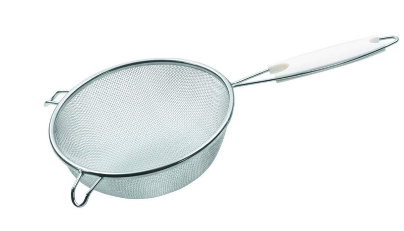Ситото е изработено изцяло от неръждаема стомана, която гарантира висока устойчивост на корозия, здравина и дълготрайна употреба. Фината мрежа позволява ефективно отделяне на течности или пресяване на съставки без остатъци.