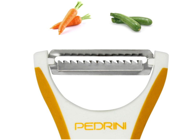 Комбинацията от стандартно острие и жулиен функция прави този инструмент изключително практичен за различни кухненски задачи – от обелване на картофи и моркови до приготвяне на декоративни зеленчукови ленти.